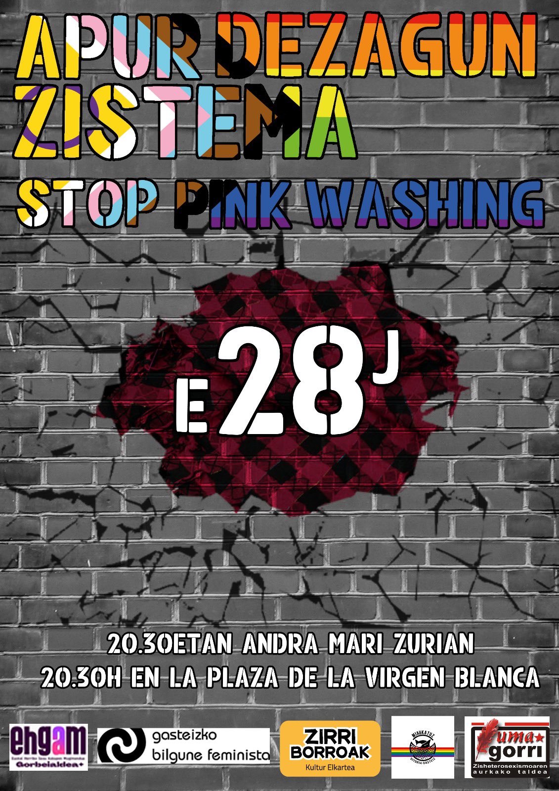 E28 kordinadoraLumagorri Gora Gasteiz transbollomaribi! 2024/06/28 Lumagorri 28 de junio, 28J, E28, ekainak 28, Ekainaren 28a, harrotasuna Habemus mani, habemus jaia! No habemus pride! MANIFESTAZIOA 20:30etan ANDRA MARI ZURIAREN PLAZAN eta ONDOREN JAIA GAZTEXEAN Info+: Gasteizko E28 Koordinadora (twitter | instagram) Partekatu: Click to share on Facebook (Opens in new window) Facebook Click to share on Bluesky (Opens in new window) Bluesky Click to share on X (Opens in new window) X Click to share on Telegram (Opens in new window) Telegram Click to share on WhatsApp (Opens in new window) WhatsApp Click to email a link to a friend (Opens in new window) Email Click to print (Opens in new window) Print